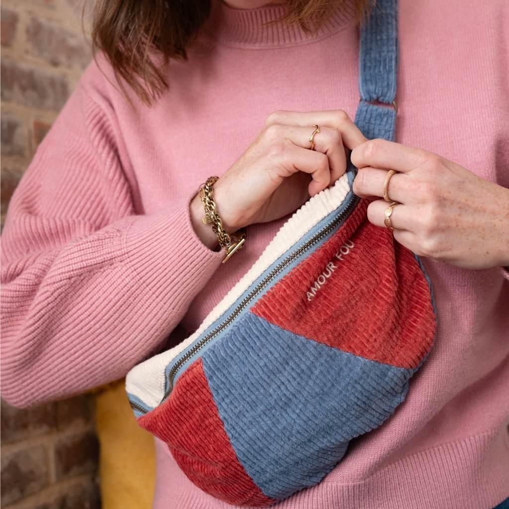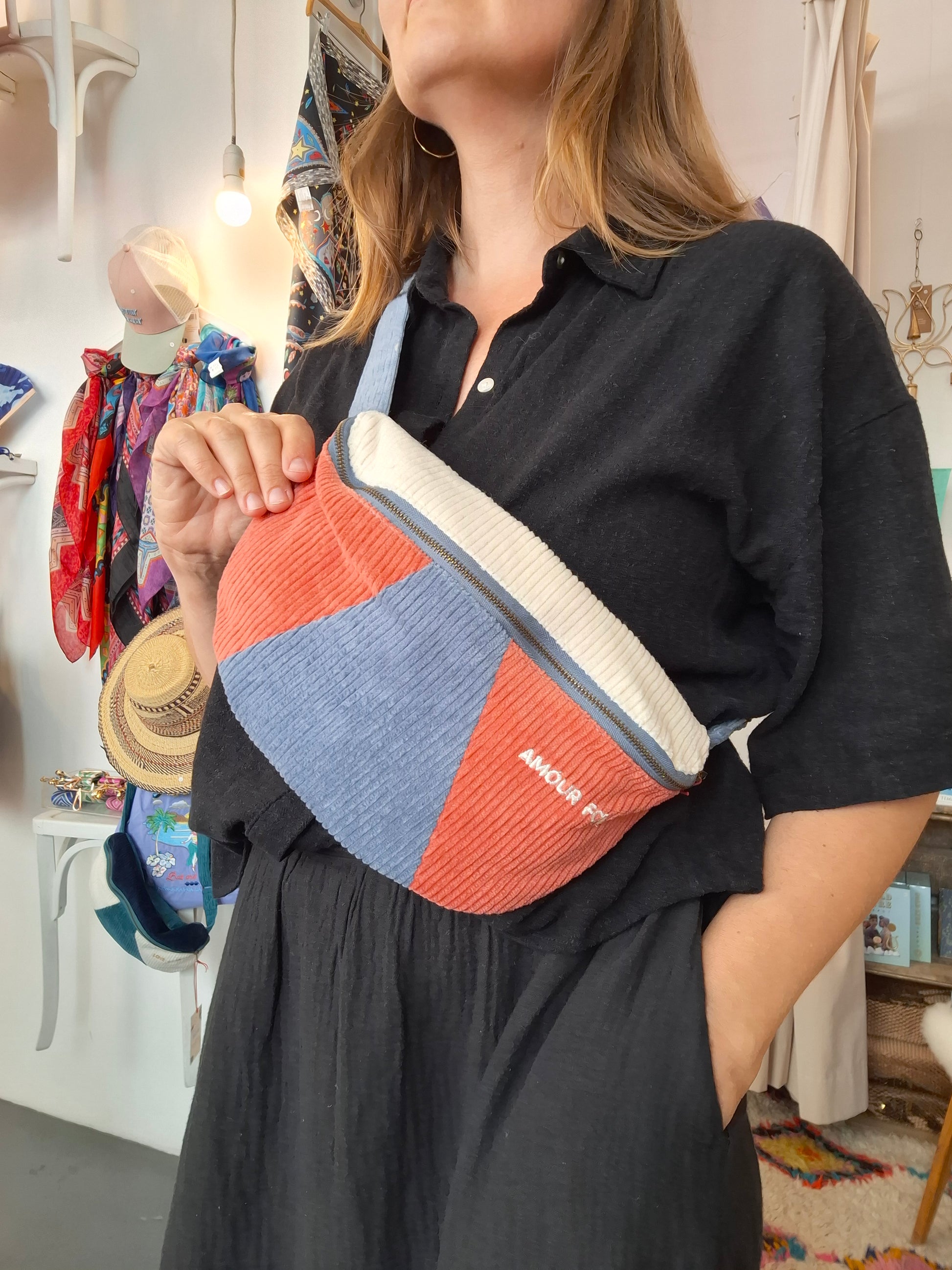 Banane en velours côtelé tricolore