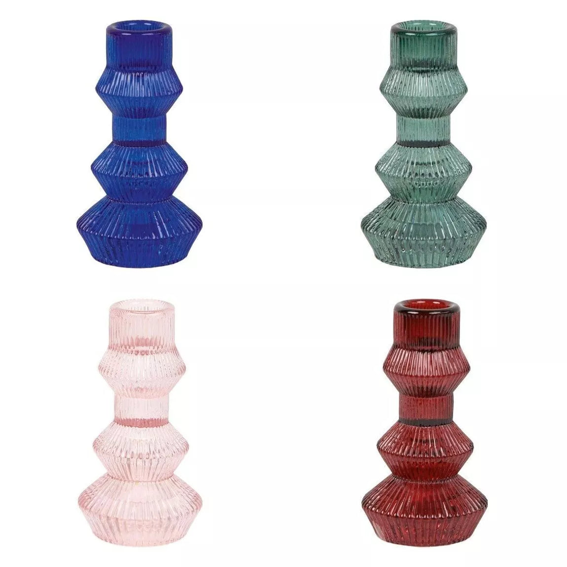 Ces bougeoirs en verre colorés ont un design unique qui s'adapte aux bougies en version chandelier mais peut également être retourné pour contenir une bougie chauffe-plat. Parfait pour ajouter une touche de couleur à une table ou pour décorer la maison au-dessus d'un manteau de cheminée.