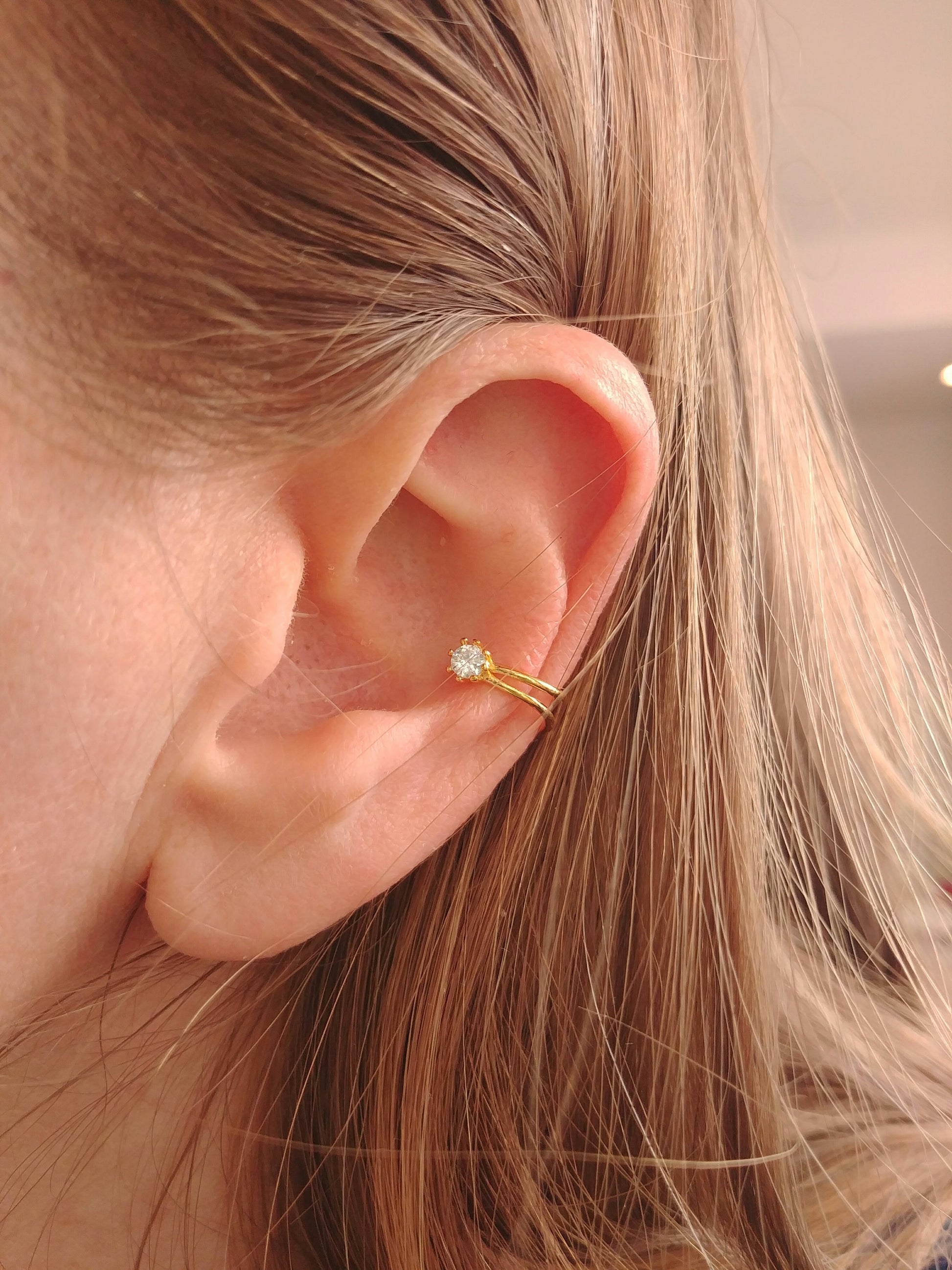 Jolie boucle simple aussi appelée ear cuff de la créatrice Israélienne Shlomit Ofir. Cette boucle s'ajuste par simple pression et peut se porter sur le bord supérieur de l'oreille ou sur le côté.