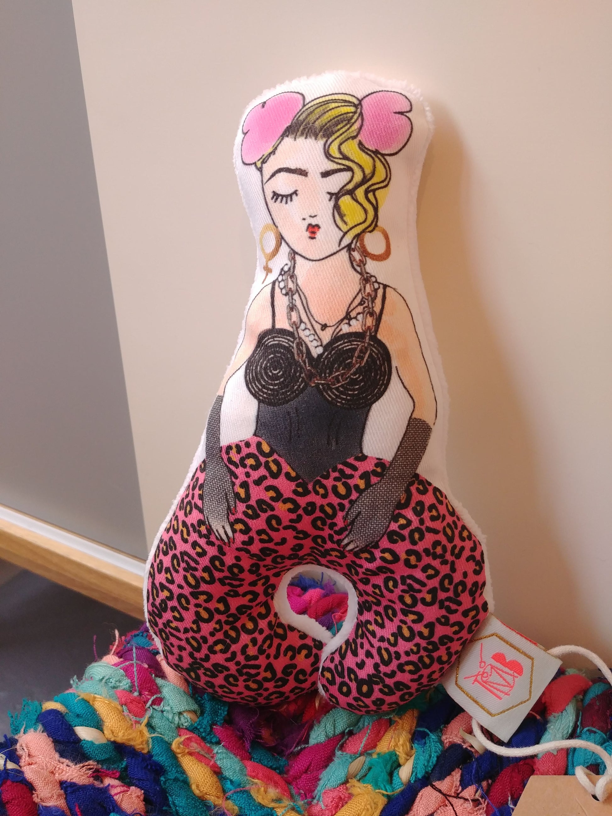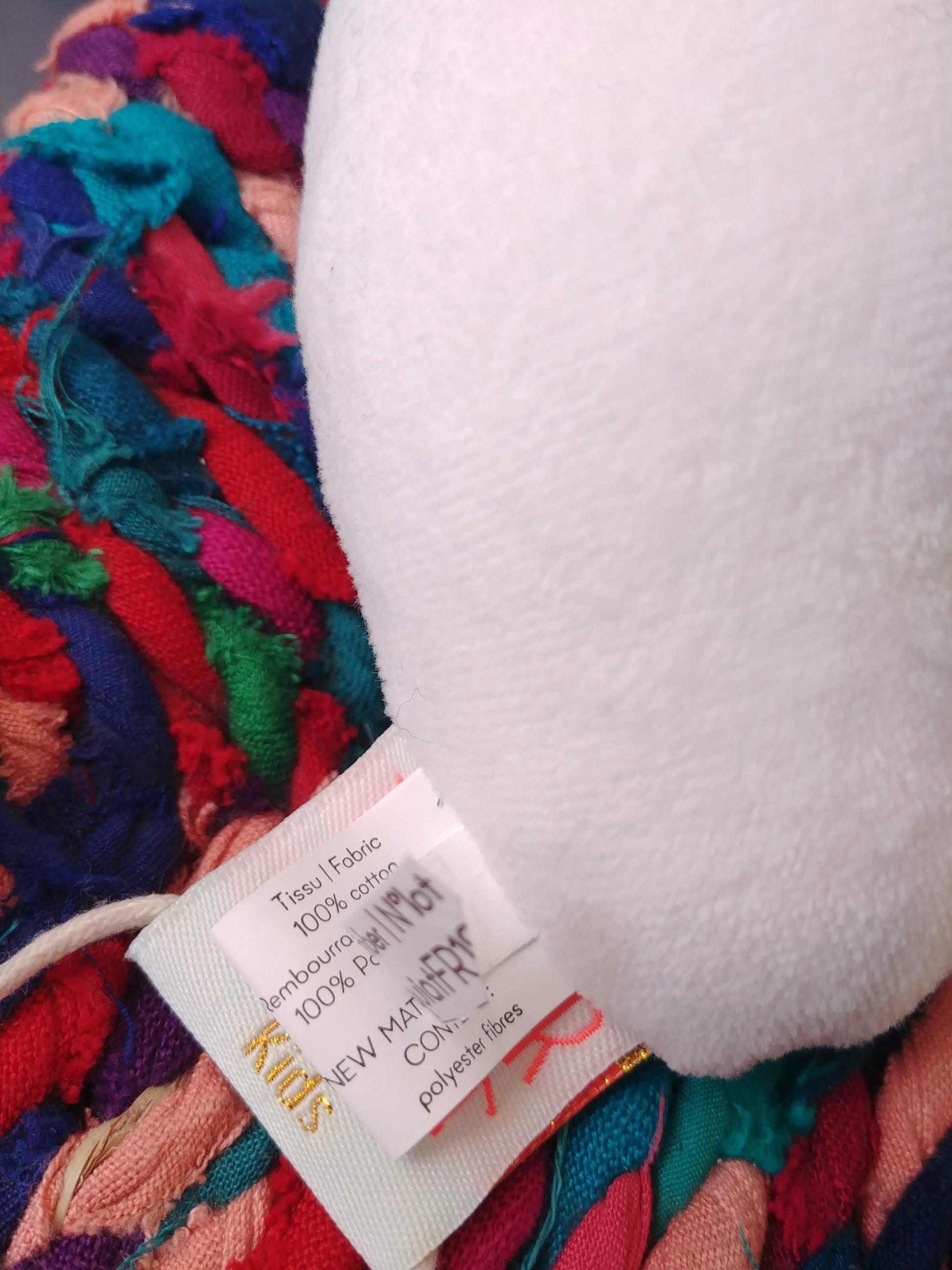 Le dessin est imprimé sur du coton organique, les encres sont sans agents toxiques et sont adaptées à l'usage des bébés.