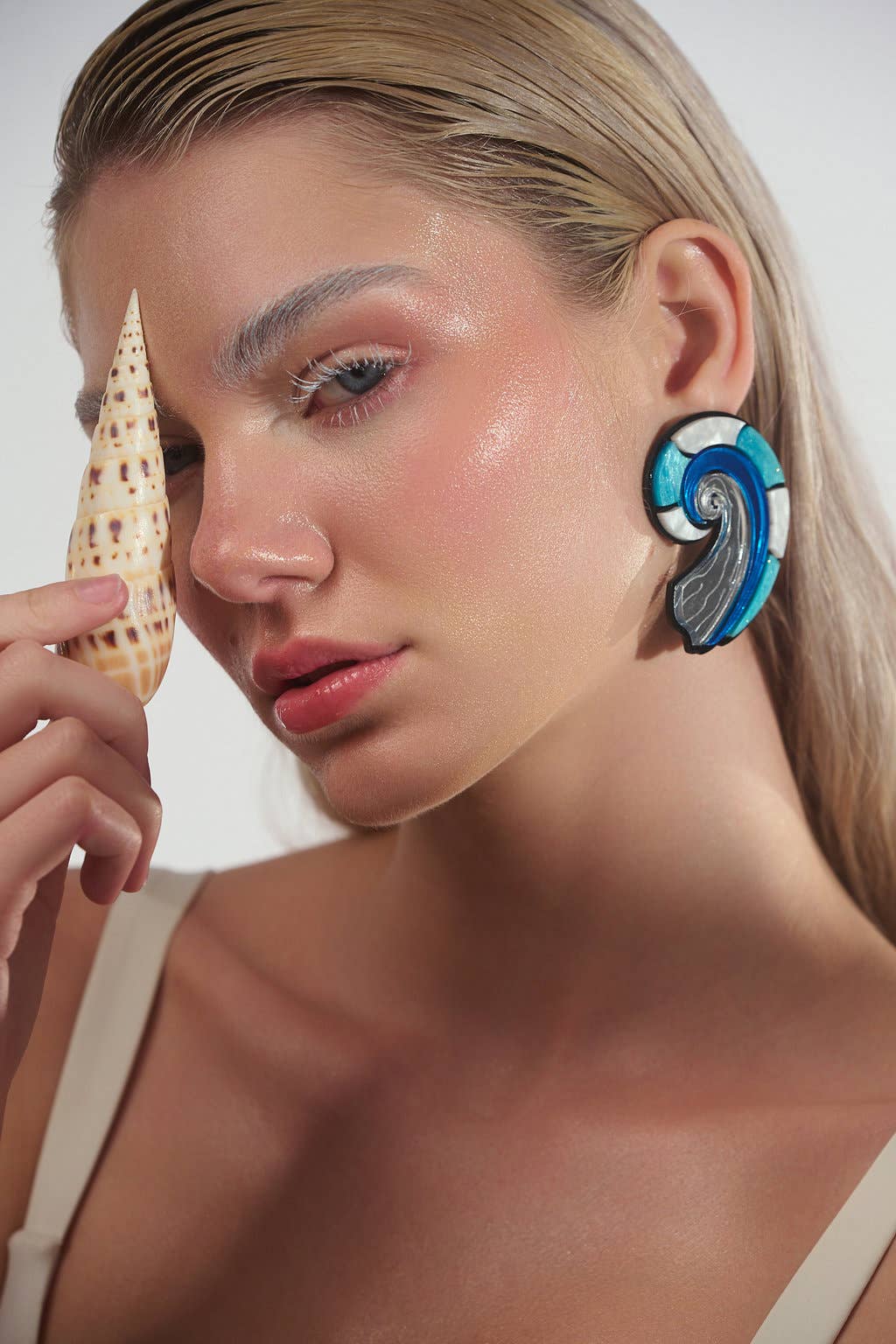 Les boucles d'oreilles Wave Motion sont des pièces en plexiglas saisissantes inspirées par la puissance et l'harmonie de la mer. Avec des lignes fluides et des nuances de bleu, blanc et turquoise inspirées de l'océan, elles évoquent une énergie estivale pure. Matériau : Plexiglas