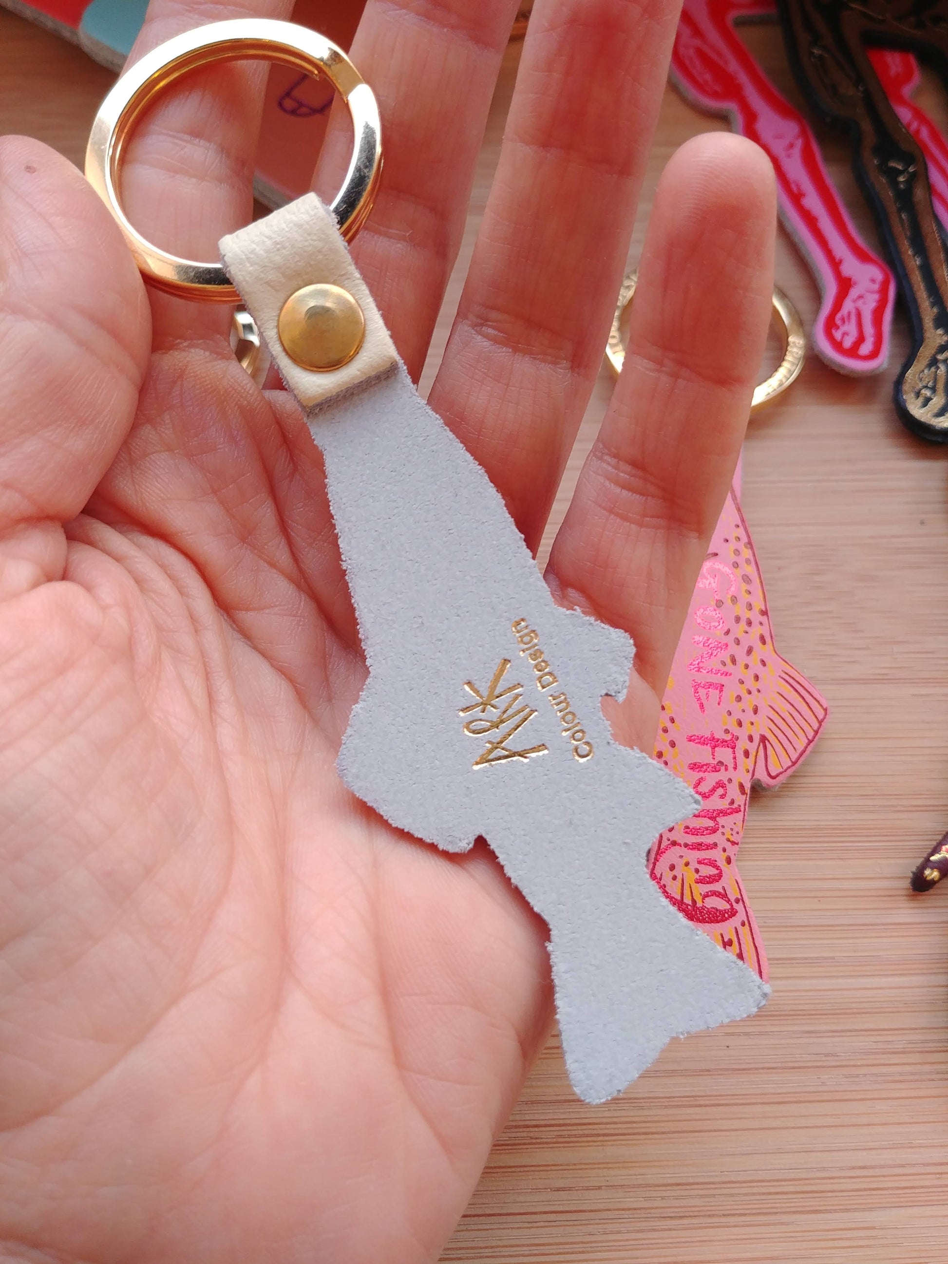 Ces portes clés de la marque écossaise Ark Color Design sont en cuir imprimé et métalisé. Sérigraphie sur cuir de vachette lisse et épais.