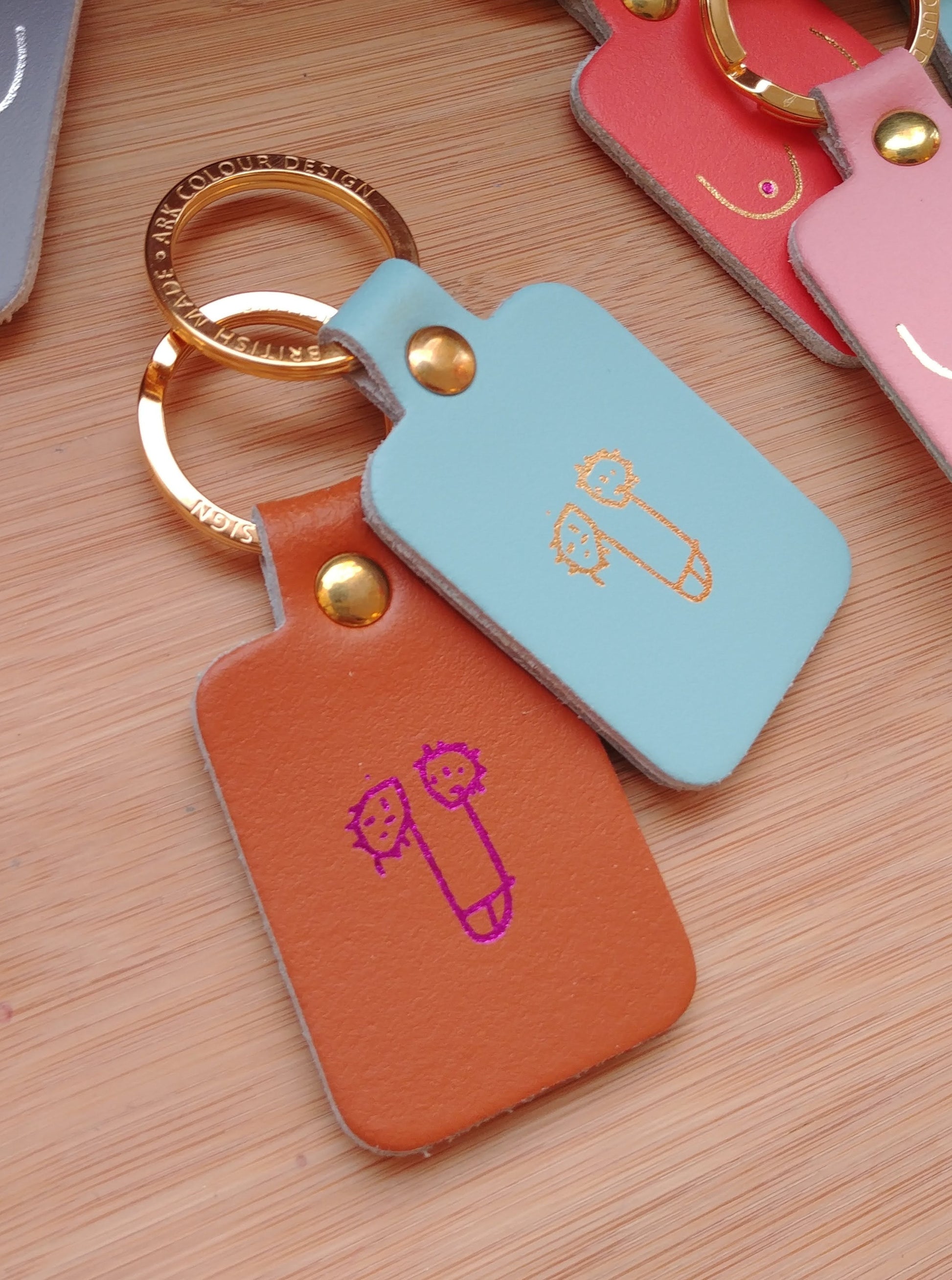 Ces portes clés de la marque écossaise Ark Color Design sont en cuir imprimé et métalisé. Sérigraphie sur cuir de vachette lisse et épais.