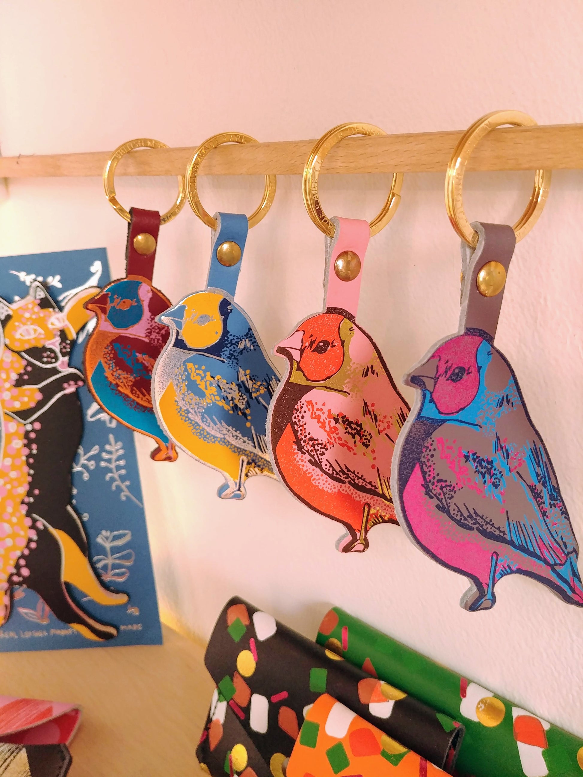 Ces portes clés de la marque écossaise Ark Color Design sont en cuir imprimé et métalisé.