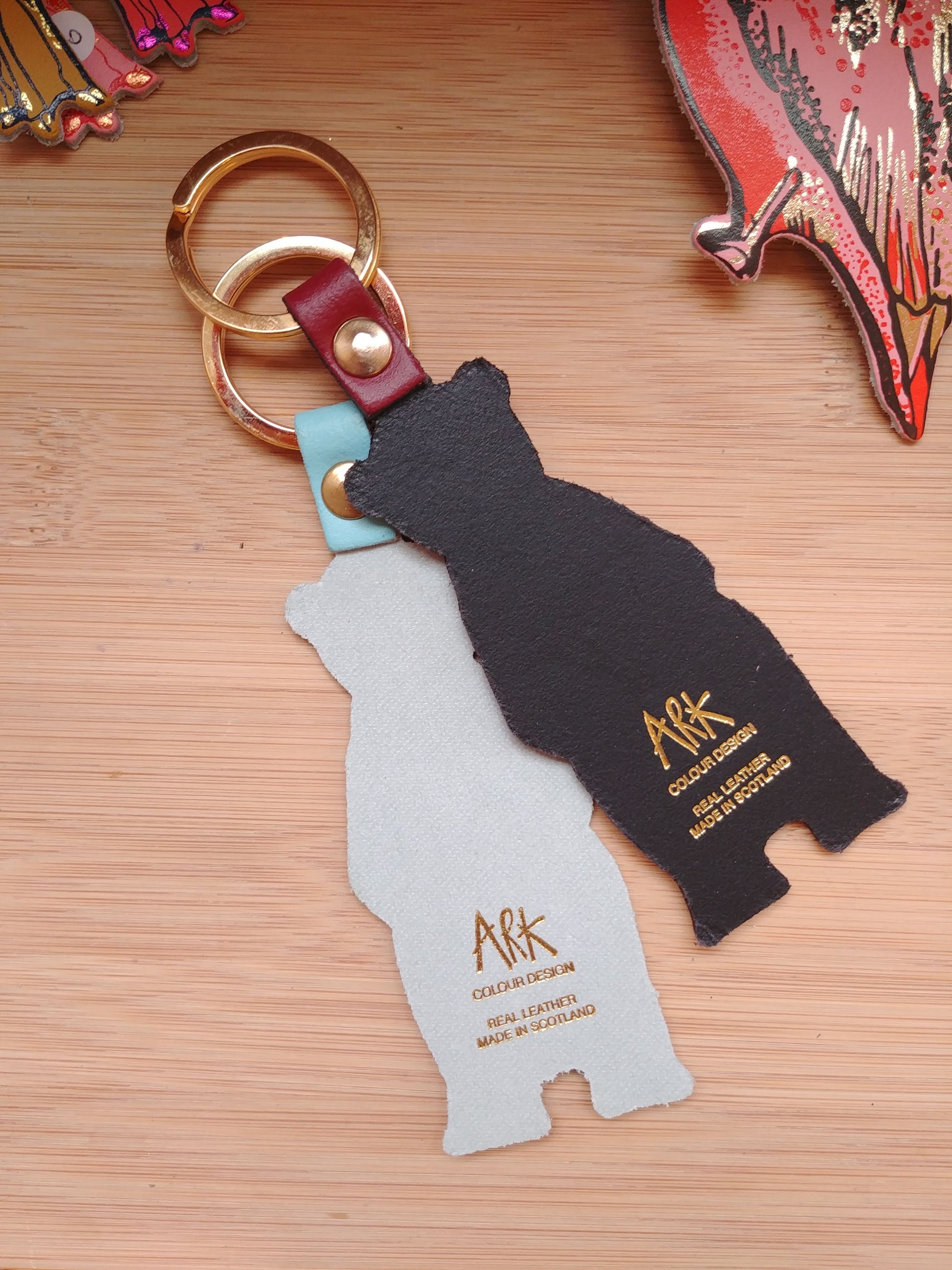 Porte clefs en cuir sérigraphié de la marque écossaise Ark Color design.
